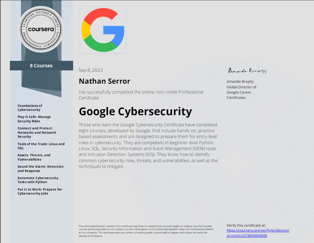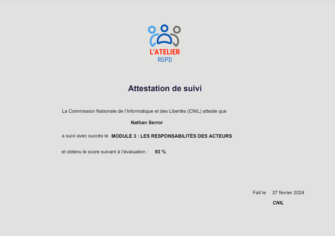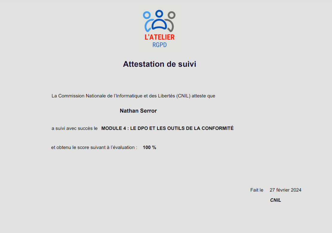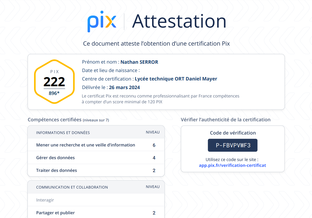 Au cours de mon cursus, j'ai pu obtenir plusieurs certifications et diplômes que vous trouverez